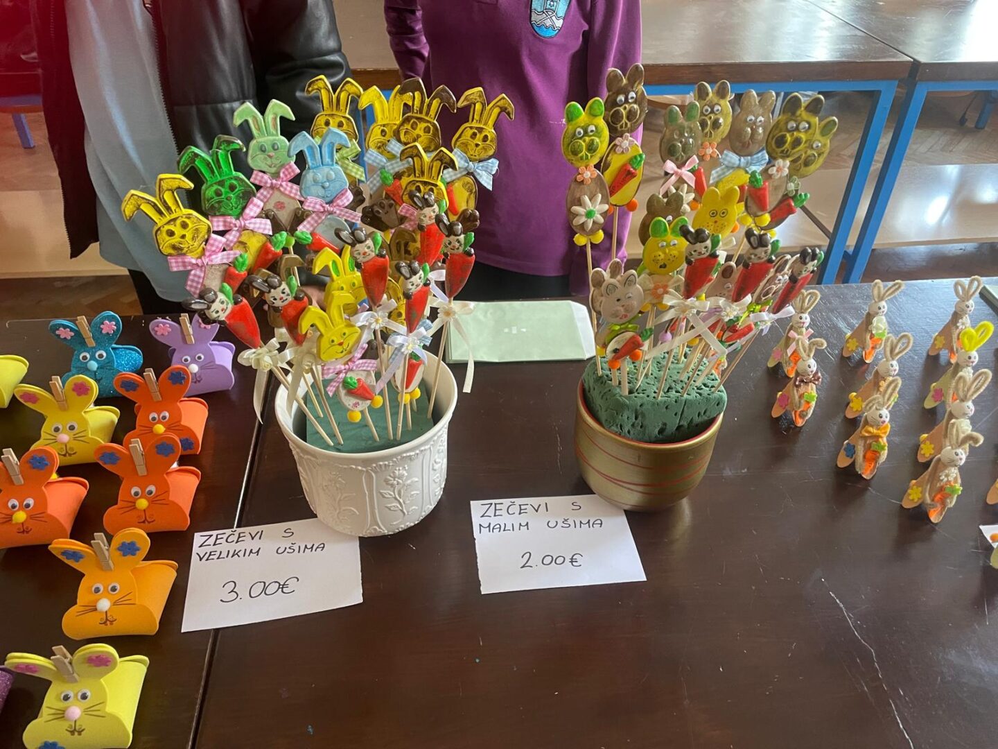 S dolaskom proljeća i Uskrsa motivi koji su plijenili pažnju brojnih malih i velikih posjetitelja proljetne izložbe u školi bili su simpatični zečevi i pisanice.