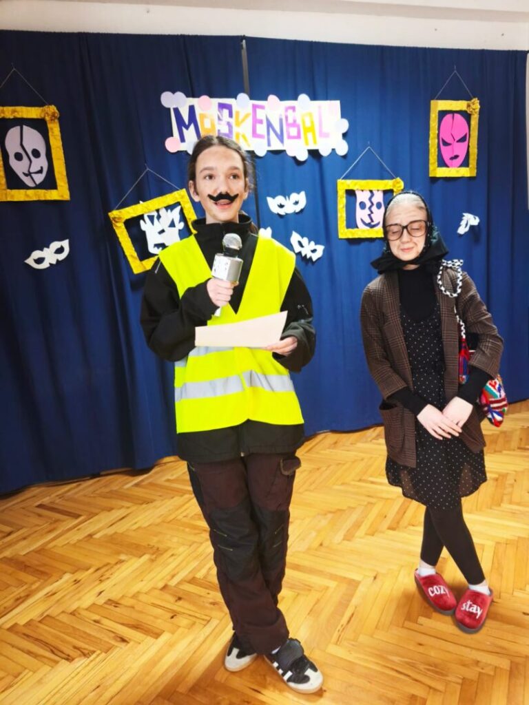 Zabavni program otvorile su učenice 8. razreda u kojem su istaknule važnost zajedništva, kreativnosti i očuvanja tradicije maškara. Nakon uvodnog dijela krenula je vesela pjesma, a onda i predstavljanje razrednih maski. Svaka skupina učenika svoju kreativnost izrazila je kostimiranjem i izvođenjem skeča. Učenici su pokazali iznimnu maštovitost – bio je tu naopaki cirkus, građevinski radnici, kauboji, likovi iz bajki, superjunaci, povijesne osobe, sportaši, životinje te razne druge originalne i humoristične maske.